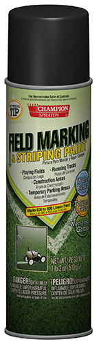 Champion Sprayon® Field Marking Paint is designed for use on grass, dirt and other unpaved surfaces. The discharge valve sprays only in a downward position. The universal tip fits all machines. Use it with a Champion Sprayon Paint Striper. Stripes 600-800 linear feet. Now toluene free; won't harm grass.