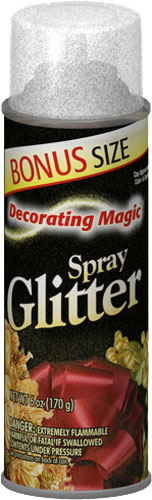 Decorating Magic® Spray Glitter adds sparkle to special-occasion and seasonal items. Convenient one-step spray includes both the adhesive and glitter. The superior adhesion is effective even on irregular surfaces like wreaths, baskets, fresh and dried floral arrangements.